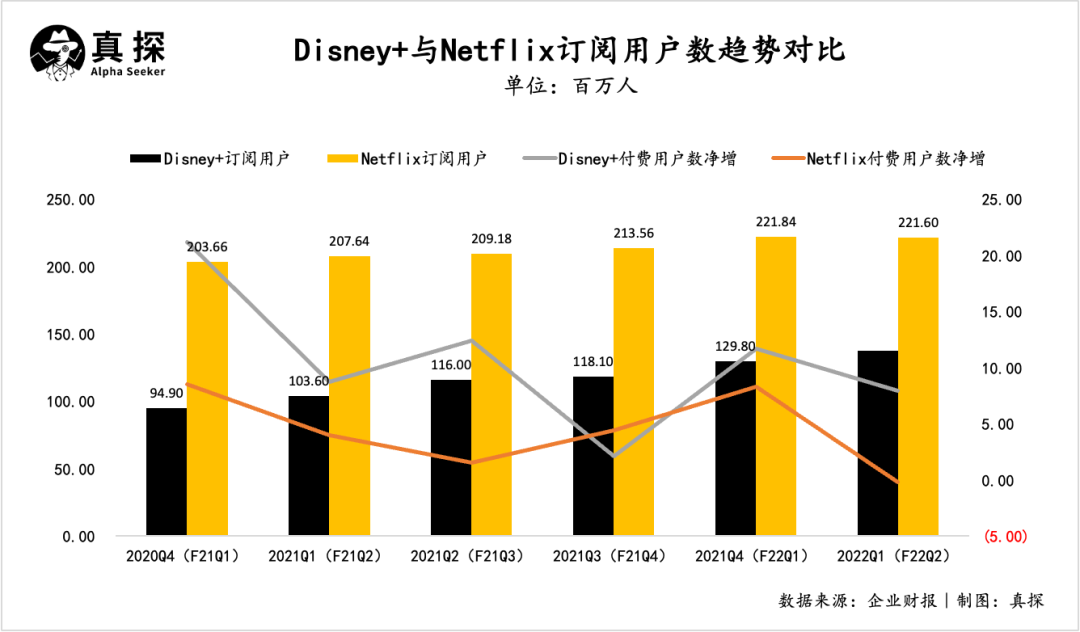 僅就直觀(guān)數(shù)據(jù)而言,一季度營(yíng)收及每股收益均遜于市場(chǎng)預(yù)期,增速較上一季度也有所放緩。但值得一提的是,迪士尼流媒體付費(fèi)用戶(hù)增長(zhǎng)遠(yuǎn)超華爾街預(yù)期,這與奈飛本季度出現(xiàn)十余年來(lái)首次付費(fèi)用戶(hù)流失形成明顯反差。
