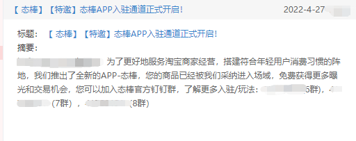 在自家店鋪商品自動被搬運(yùn)到態(tài)棒平臺的兩周之后,潮牌女裝創(chuàng)始人趙茜終于在淘寶后臺收到了的入駐態(tài)棒的正式“特邀”。而邀請信息中,“免費(fèi)獲得更多曝光和交易機(jī)會”一句話,無疑成了直擊她的痛點(diǎn),和最吸引同行們的利益點(diǎn)。