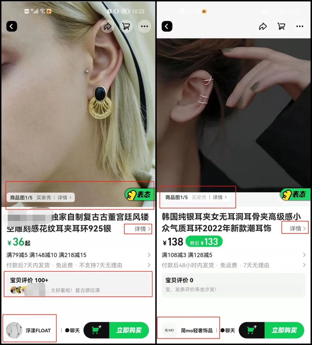 商品詳情頁方面,態(tài)棒也做出了特色。點(diǎn)擊某一推薦商品后會進(jìn)入商品的詳情頁后,直接看到的只有商品圖片、商品名稱、價(jià)格(優(yōu)惠信息),商品詳情、買家秀和評價(jià)都以入口的形式折疊展示,需要點(diǎn)擊進(jìn)入才能查看。