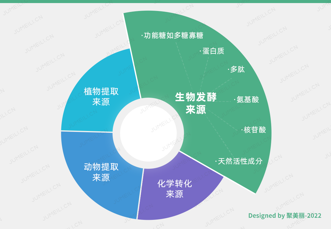王瑞妍從原料來(lái)源和制備的角度,把原料分為四大類,分別是:植物提取來(lái)源、動(dòng)物提取來(lái)源、化學(xué)轉(zhuǎn)化來(lái)源,以及利用合成生物技術(shù)支撐的生物發(fā)酵來(lái)源。