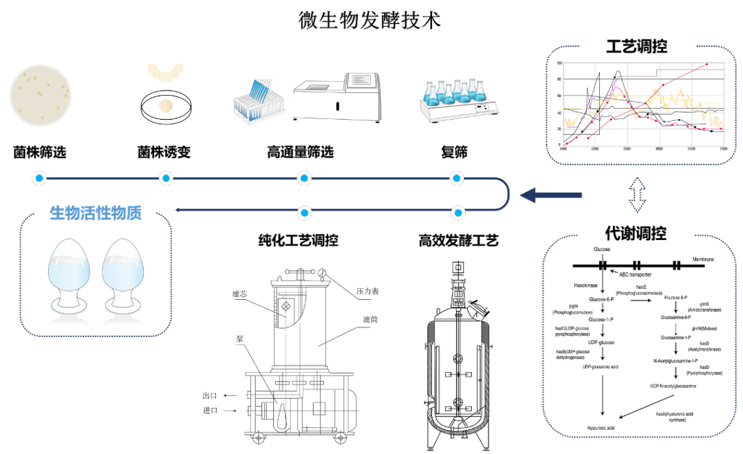 王瑞妍介紹說(shuō),華熙生物已經(jīng)建立合成生物技術(shù)壁壘,通過(guò)設(shè)計(jì)、改造、表達(dá)、優(yōu)化、高通量篩選,創(chuàng)制生產(chǎn)生物活性物的菌株,再通過(guò)中試放大、生產(chǎn)、制備、工藝調(diào)控等獲得高純度的活性原料。