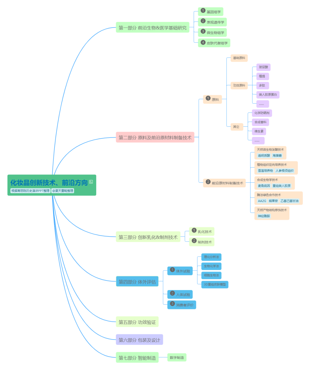 蔣麗剛在5月10日聚美麗2022化妝品科研趨勢(shì)大會(huì)的演講中列舉了其團(tuán)隊(duì)持續(xù)關(guān)注的化妝品創(chuàng)新技術(shù)的方方面面,參考蔣工在之前多次演講內(nèi)容的基礎(chǔ)上,聚美麗整理成了更詳細(xì)的思維導(dǎo)圖,如下圖所示。