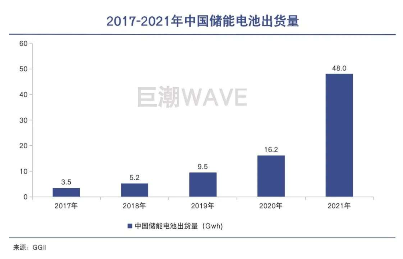 GGII數(shù)據(jù)顯示,2021年國內(nèi)儲能電池出貨量達(dá)48GWh,同比增長2.6倍;其中電力儲能電池出貨量29GWh,同比2020年的6.6GWh增長4.39倍。在新冠疫情和供應(yīng)鏈短缺的壓力之下,這樣的增長速度實(shí)在是難得一見。