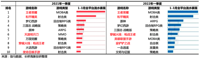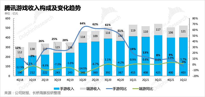 (2)游戲:監(jiān)管消化與消費(fèi)降溫一季度游戲收入基本與去年持平,低于市場(chǎng)預(yù)期,主要預(yù)期差在手游業(yè)務(wù)上。除了去年高基數(shù)影響,新上線(xiàn)的游戲表現(xiàn)不佳、全球解封后線(xiàn)上消費(fèi)降溫等因素都帶來(lái)了一些負(fù)面影響。
