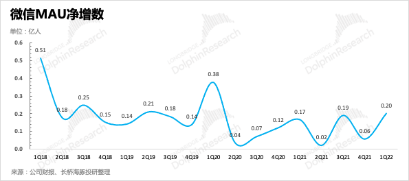 (1)用戶(hù)生態(tài):季節(jié)效應(yīng)拉動(dòng)增長(zhǎng)一季度微信、QQ用戶(hù)均迎來(lái)用戶(hù)凈增,但QQ的表現(xiàn)仍然落后于超兩倍用戶(hù)體量的微信,海豚君猜測(cè)春晚視頻號(hào)貢獻(xiàn)了不少用戶(hù)活躍。