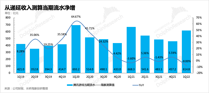 除此之外,作為對(duì)標(biāo)網(wǎng)易的《率土之濱》上線(xiàn)的SLG手游《重返帝國(guó)》,表現(xiàn)并不好,熱度下滑速度較快。除此之外,一季度基本沒(méi)有其他能夠堪當(dāng)大任的新游上線(xiàn),雖然有《金鏟鏟之戰(zhàn)》、《英雄聯(lián)盟手游》的增量,但也很難突破去年的高基數(shù)。測(cè)算出來(lái)的當(dāng)期新增流水,一季度同比下滑了8%。