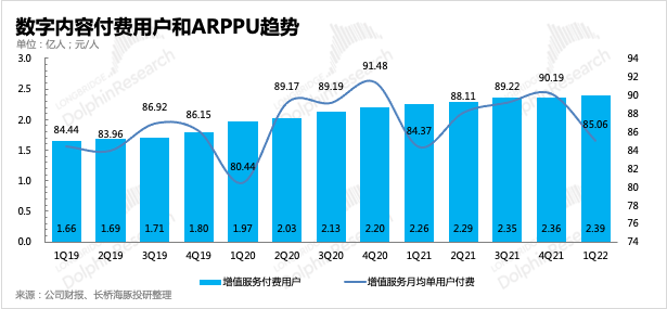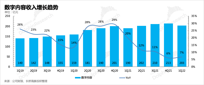 一季度數(shù)字內(nèi)容收入203億元,同比增長(zhǎng)6%。除了騰訊音樂(lè)會(huì)員訂閱環(huán)比新增8000萬(wàn),以及騰訊視頻連番漲價(jià)帶來(lái)的增量收入外,隨著視頻號(hào)用戶(hù)規(guī)模逐步觸達(dá)DAU 5億的里程碑之后,自然而然也開(kāi)始有一些直播流水的貢獻(xiàn),但目前還在初期滲透階段,單用戶(hù)付費(fèi)不高。