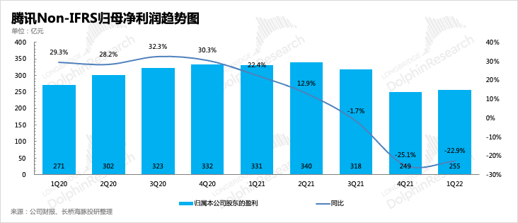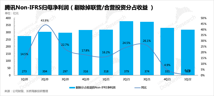 因此如果剔除掉聯(lián)營(yíng)/合營(yíng)公司分占虧損對(duì)利潤(rùn)的侵蝕影響,直接在Non-IFRS歸母凈利潤(rùn)上加回這部分的投資損失,那么也能簡(jiǎn)單對(duì)比一下騰訊自身經(jīng)營(yíng)情況的獲利能力。