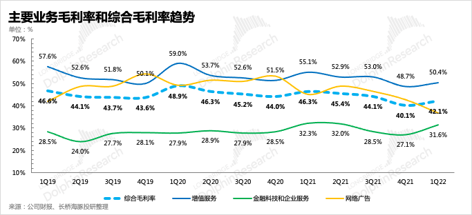 1、不同于上季度的毛利率預(yù)期差較大,這次主要低于預(yù)期的是收入端。其中廣告、金科業(yè)務(wù)還明顯受到了疫情封控的影響,增長(zhǎng)阻力較強(qiáng)。而毛利率則暫時(shí)穩(wěn)住了下滑勢(shì)頭,環(huán)比略有改善。