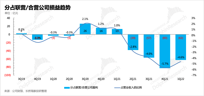 對(duì)于中小股東來(lái)說(shuō),更樂(lè)意看到騰訊減持一些持續(xù)大幅虧損的公司,短期可以帶來(lái)肉眼可見(jiàn)的豐厚收益。我們單看目前的聯(lián)營(yíng)/合營(yíng)公司,一季度給騰訊帶來(lái)的分占虧損仍然很高。