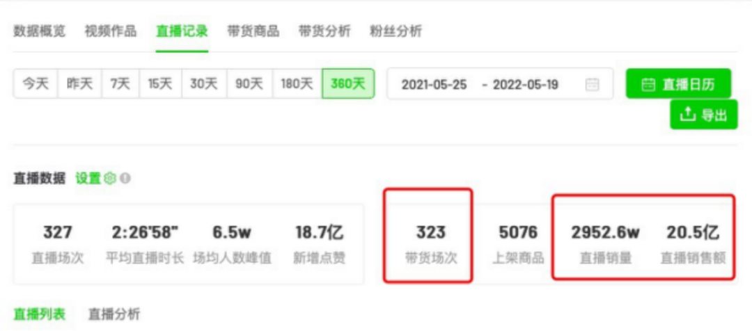 由于淘寶直播只保留近一年直播記錄,我們先統(tǒng)計(jì)近一年的數(shù)據(jù)。