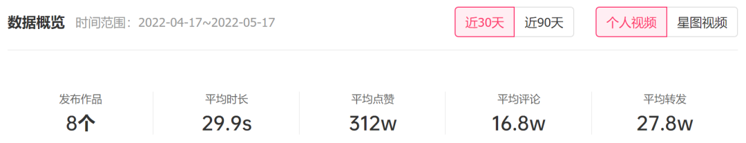高粉絲增長背后,是持續(xù)活躍的互動數(shù)據(jù),近30天內(nèi),墊底辣孩發(fā)布的內(nèi)容平均點贊量達到312萬,平均轉發(fā)量也達到27.8萬。