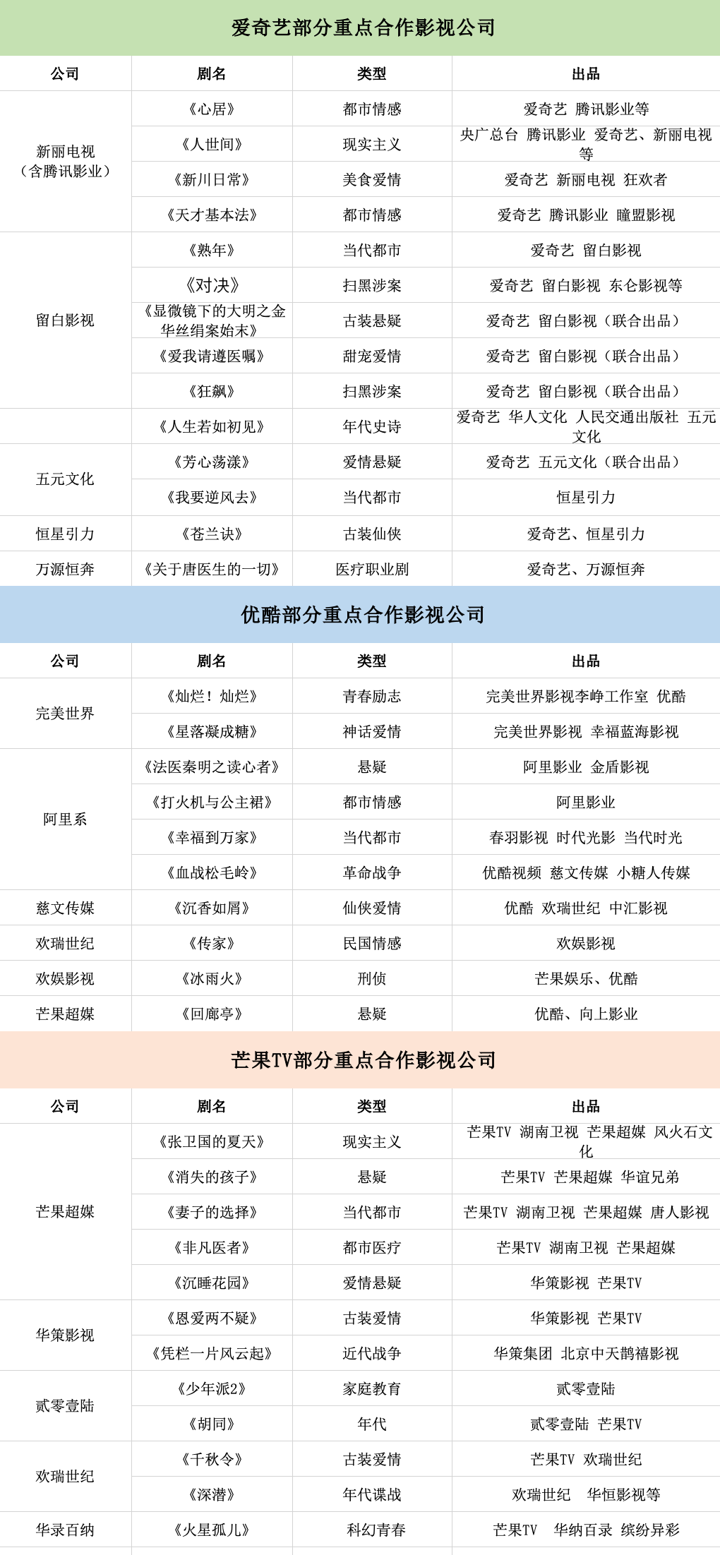 內(nèi)容自制的另一面版權(quán)采購,也是各視頻平臺內(nèi)容片單的重要組成部分,在這些外部合作團(tuán)隊(duì)中,到底哪些人在為愛優(yōu)芒生產(chǎn)內(nèi)容呢?