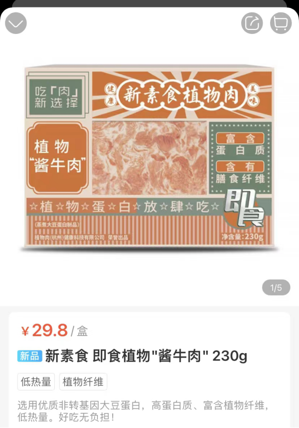 市面上人造肉產(chǎn)品的高售價(jià)也勸退不少消費(fèi)者。以杭州盒馬鮮生為例,一盒230g的新素食植物“醬牛肉”定價(jià)約30元,而同樣的價(jià)格可以買到500g的新鮮牛肉。在天貓平臺(tái),一盒226g的Beyond Meat植物肉漢堡牛肉餅約26元,而在某牛肉產(chǎn)品天貓旗艦店,99元可以買到1000g牛肉餅。