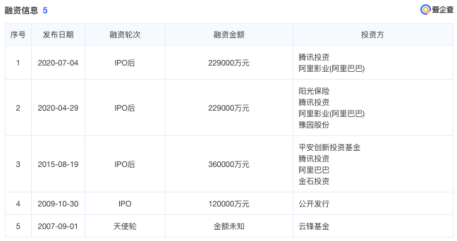 沒(méi)了大批藝人的華誼兄弟元?dú)獯髠?,互?lián)網(wǎng)資本開(kāi)始進(jìn)入視線。華誼兄弟《招股書(shū)》披露,馬云在2006年6月,以53.5萬(wàn)元的價(jià)格買(mǎi)下華誼兄弟10.7%的股權(quán),后馬云又多次增持,還拉來(lái)了自己的朋友一起入股。愛(ài)企查顯示,2007年云峰基金(馬云、虞鋒為創(chuàng)始人)對(duì)華誼兄弟進(jìn)行融資,還有萬(wàn)向集團(tuán)的少帥魯偉鼎、分眾傳媒的江南春也分別入股華誼。2011年5月,騰訊以16元/股的價(jià)格,花費(fèi)4.45億元獲得4.6%股權(quán),成了華誼兄弟第一大機(jī)構(gòu)投資者。