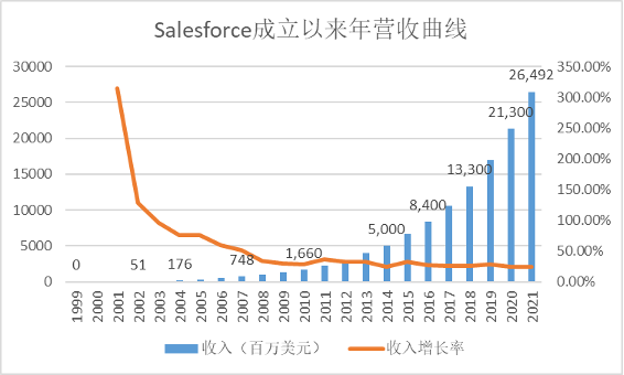 圖:Salesforce年?duì)I收曲線(新眸制圖)