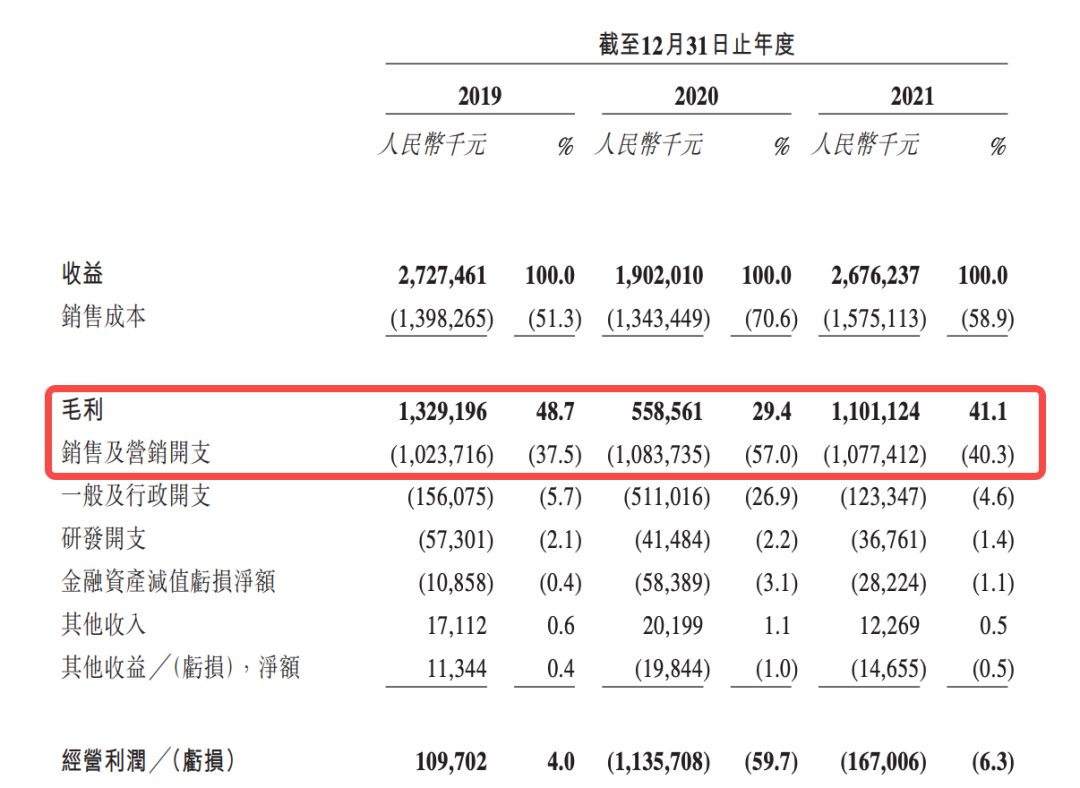 成本端,友寶大部分的銷售成本來自“已售存貨成本”(主要是為無人售貨機采購快消品的支出),2019年至2021年,友寶的毛利率分別為48.7%、29.4%和41.1%。
