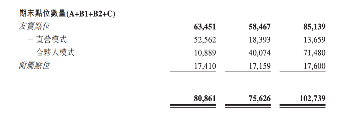 “合伙人點位”近三年數(shù)量大增,“直營點位”大幅減少,“附屬點位”數(shù)量幾乎不變,圖源:友寶招股書