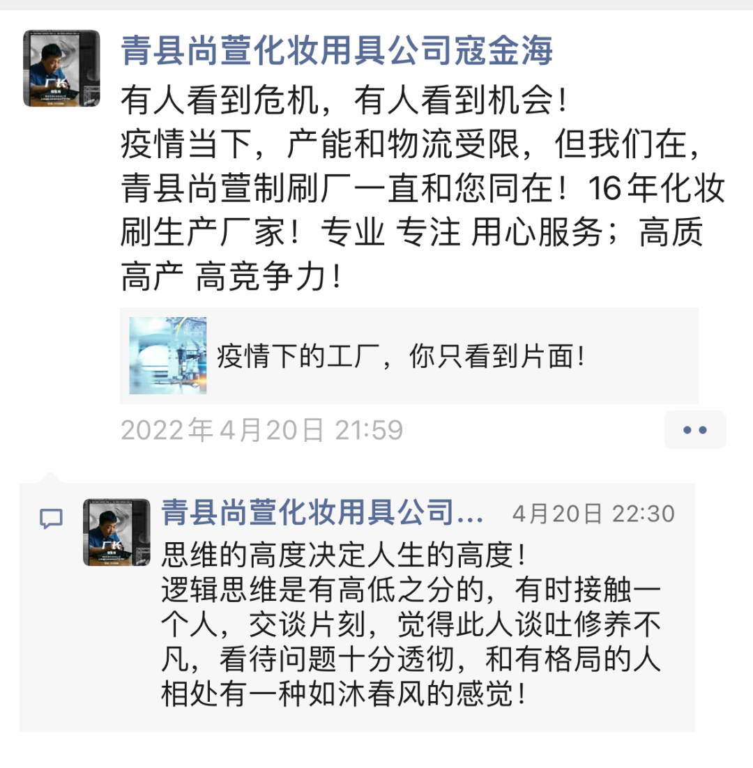 這里不少人都藏著一門“制刷”手藝,寇金海是其中一員,18歲進(jìn)入一家韓資工廠,從廠工做到生產(chǎn)廠長(zhǎng)。2008年金融危機(jī)的影響下,工廠訂單量驟減,寇金海自己創(chuàng)辦的小作坊,從外貿(mào)轉(zhuǎn)向內(nèi)銷,一路成長(zhǎng)為一家“有名有姓”的青縣尚萱化妝用具廠。
