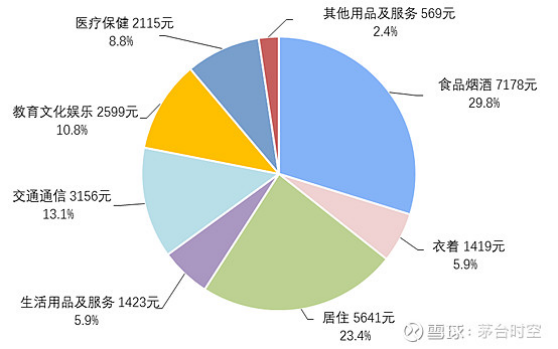 其中,食品煙酒消費支出7178元,占居民總支出29.8%,城鎮(zhèn)居民會花更多錢來消費白酒。