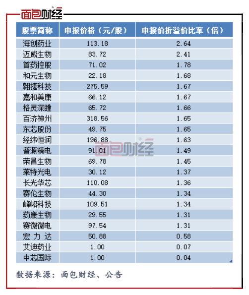 比如,九泰基金對百濟神州報出超300元/股的高報價,對中芯國際報1.00/股的超低報價。兩個明顯不合理的報價均被剔除有效報價區(qū)間。