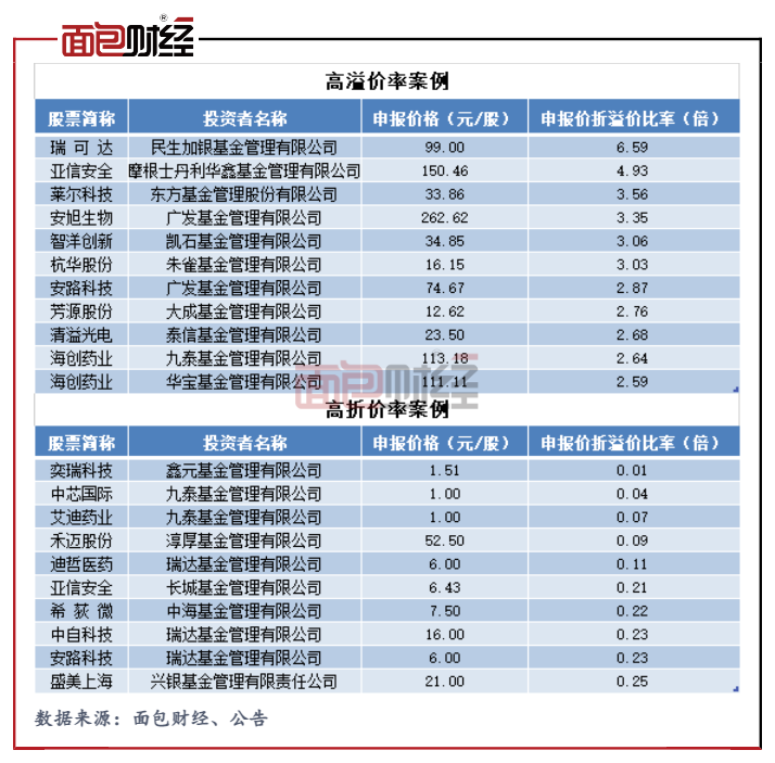 面包財經(jīng)近期將對標(biāo)相關(guān)政策,研究一些公募基金新股報價不合理的典型案例。