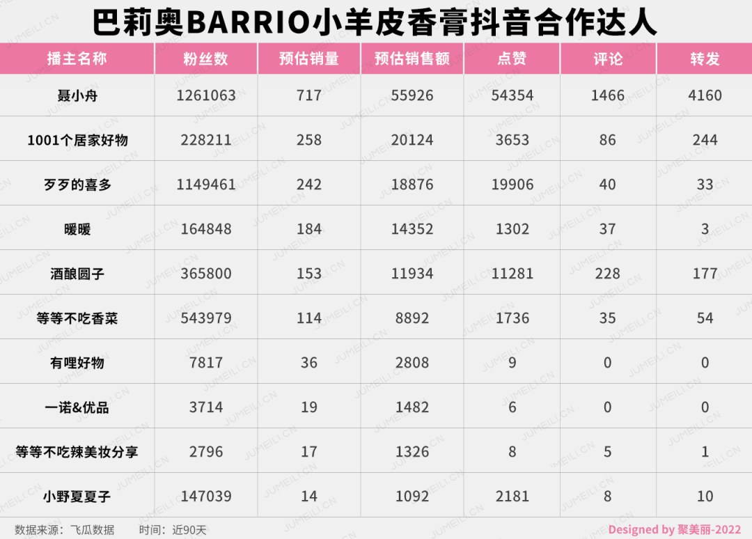 以巴莉奧BARRIO小羊皮香膏在近90天合作的抖音短視頻達人為例,這個客單價為78元的香膏,目前在抖音平臺累積的銷量為2.3萬。