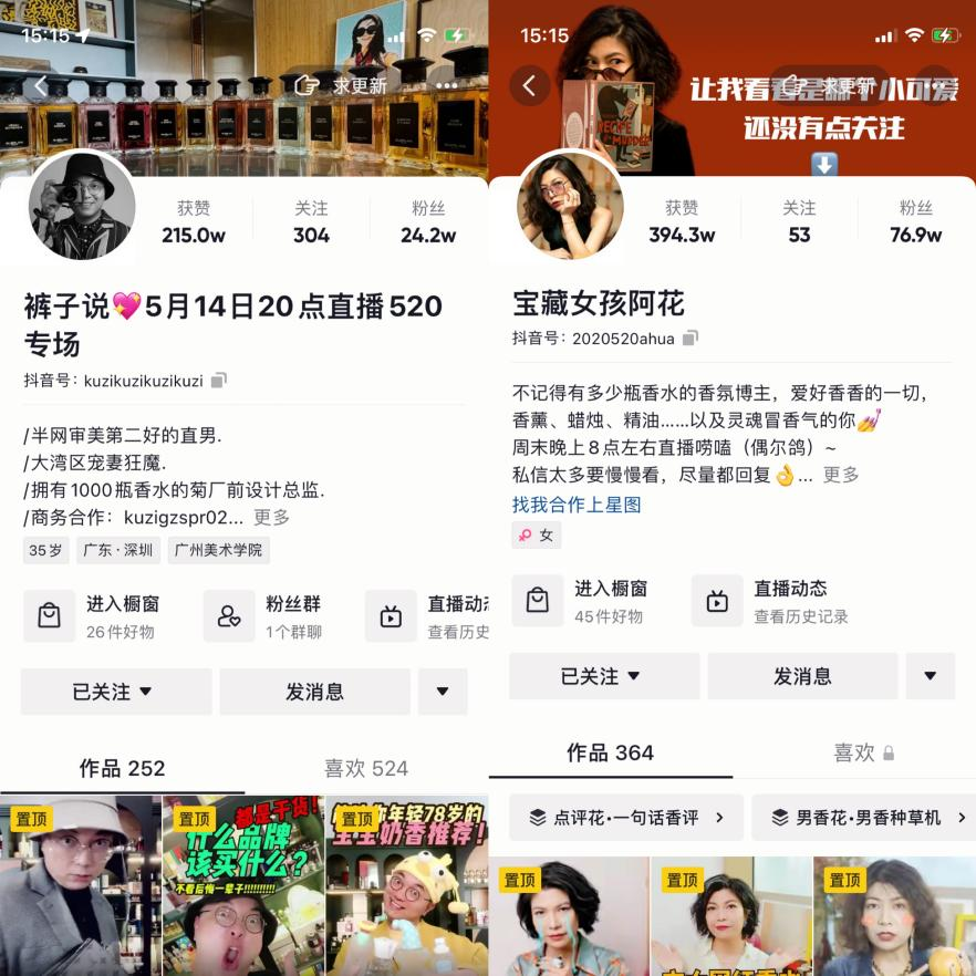 在穎通發(fā)布的《2021中國香水行業(yè)研究白皮書》中顯示:在抖音平臺,目前香水垂類人群已經(jīng)達到8千萬以上的量級,每天帶貨香水品類相關(guān)產(chǎn)品的直播間能夠創(chuàng)造的銷售額在3百萬到4百萬元之間,占抖音美妝行業(yè)的15%。