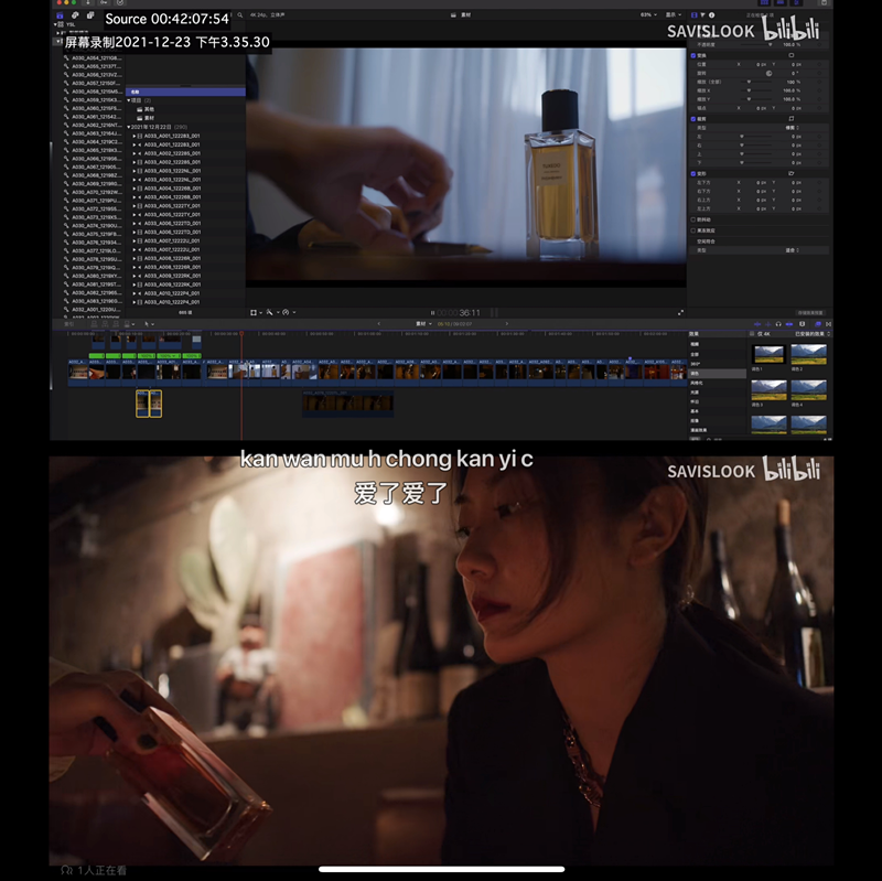 譬如YSL香水與B站的時尚UP主SAVILOOK的合作,通過2分鐘電影質(zhì)感的正片及后續(xù)用Vlog2個視頻的形式,記錄團隊如何利用一周的時間,從創(chuàng)意穿搭到選址、拍攝,再到剪輯、配樂,完成整個創(chuàng)意合作的過程。