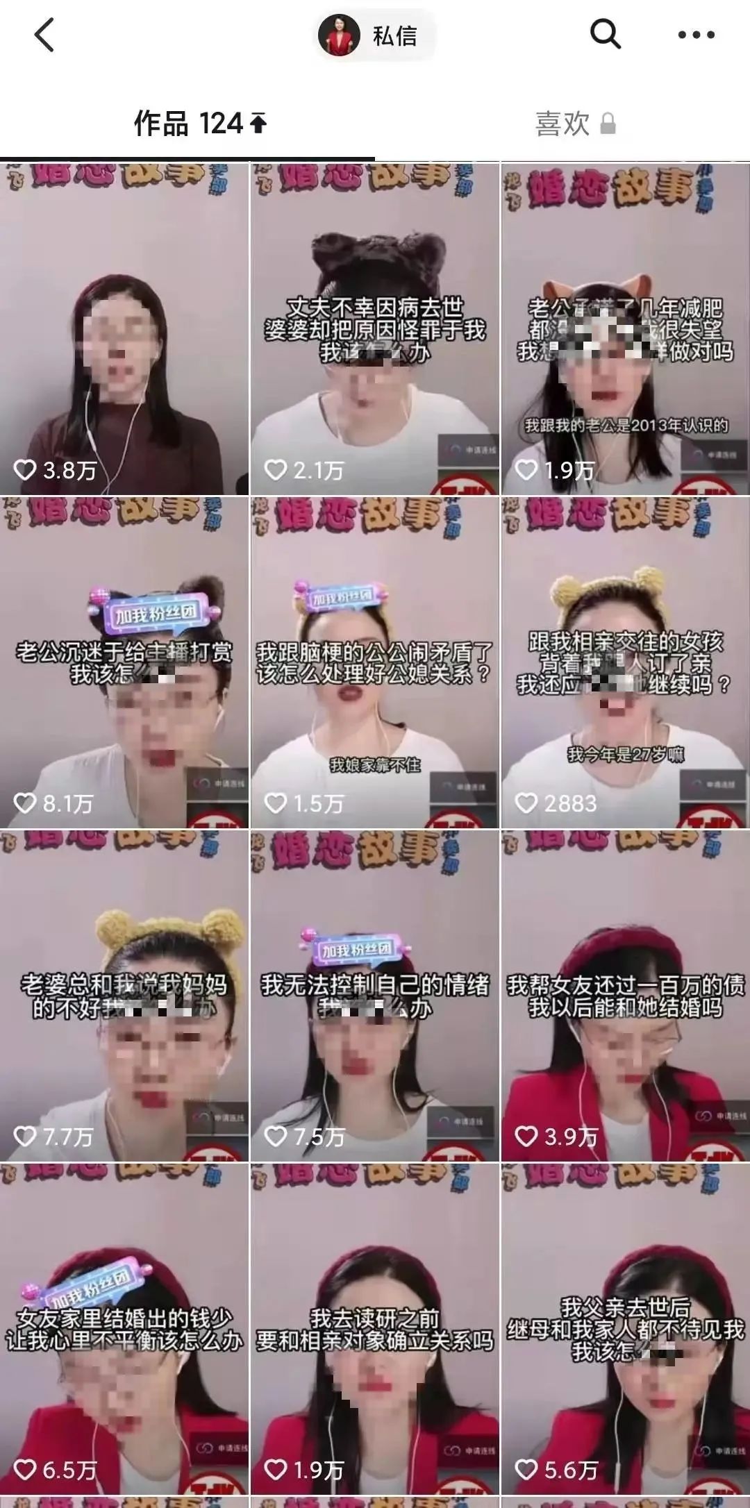 順著B(niǎo)站我找到了她的抖音賬號(hào)。隨后,很多和她連麥的網(wǎng)友的故事都讓我感嘆“世界之大無(wú)奇不有”。從“老婆有個(gè)同性伴侶怎么辦?”到“我有一個(gè)女朋友和四個(gè)孩子,我目前的處境使我十分困擾,該怎么辦”……狗血離奇的劇情加上龍飛律師的庖丁解牛和見(jiàn)招拆招,簡(jiǎn)直比看綜藝下飯?zhí)唷?/p>