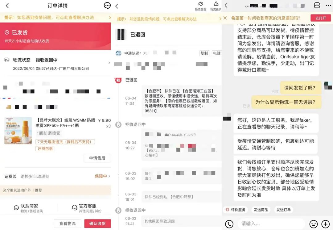但又過(guò)了兩天,我發(fā)現(xiàn)100多元買的的鞋子在顯示了幾天“已發(fā)貨”后,物流沒(méi)有絲毫顯示。最后沒(méi)辦法,我拜托同事幫我找到了客服。詢問(wèn)之下,對(duì)方說(shuō),因?yàn)楸本┮咔?,所以物流受到影響?/p>