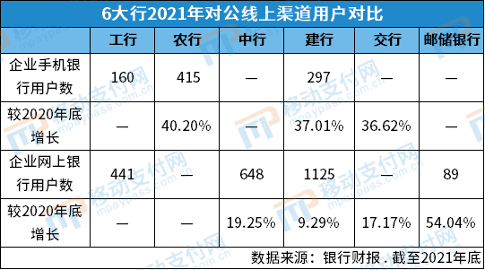 至2021年底,農(nóng)行企業(yè)掌銀客戶數(shù)415萬戶,較2020年末增加119萬戶;企業(yè)金融服務(wù)平臺客戶數(shù)947萬戶,較2020年末增加116萬戶。