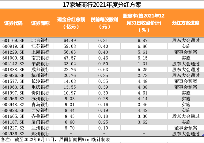 接下來,其余已發(fā)布分紅實(shí)施公告的3家銀行,包括南京銀行、西安銀行和廈門銀行,也將分別于6月16日、6月19日和6月20日分紅派息。