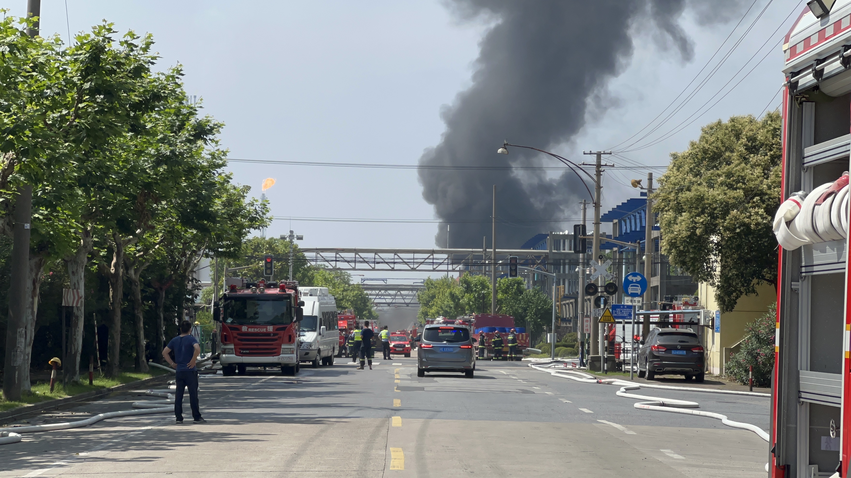 事故發(fā)生后,當(dāng)?shù)叵谰仍?duì)伍立即調(diào)派563名消防救援人員、113輛消防車趕赴現(xiàn)場(chǎng)處置。目前現(xiàn)場(chǎng)火勢(shì)已經(jīng)得到有效控制,處置工作仍在進(jìn)行中。