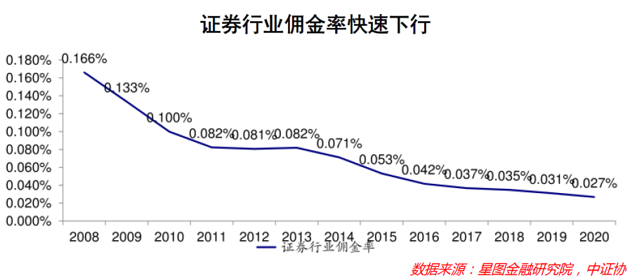 一是經(jīng)紀(jì)業(yè)務(wù),即收取證券交易的手續(xù)費(fèi),取決于股市中的換手率和傭金率。證券市場(chǎng)是會(huì)員制度,個(gè)人沒(méi)辦法在市場(chǎng)獨(dú)自進(jìn)行買賣,所以委托有會(huì)員資格的券商來(lái)進(jìn)行代理買賣,投資者在券商開立個(gè)人賬戶進(jìn)行交易,并支付傭金。對(duì)于券商而言,是一種標(biāo)準(zhǔn)的持牌業(yè)務(wù),這種看似壟斷的業(yè)務(wù),因?yàn)橥|(zhì)化競(jìng)爭(zhēng)得太激烈,近年來(lái)費(fèi)率持續(xù)走低。