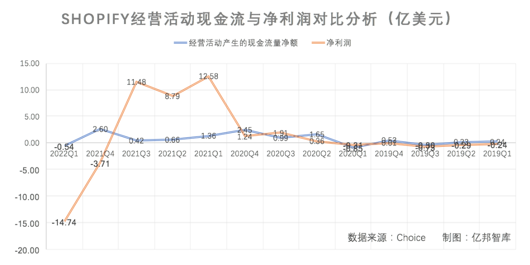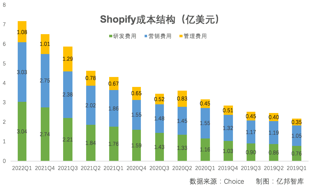 與此同時(shí),Shopify2022年一季度凈利潤大幅虧損14.74億美元,主要由于營收下降,但研發(fā)費(fèi)用、營銷費(fèi)用和管理費(fèi)用慣性增長,導(dǎo)致凈利潤變差。