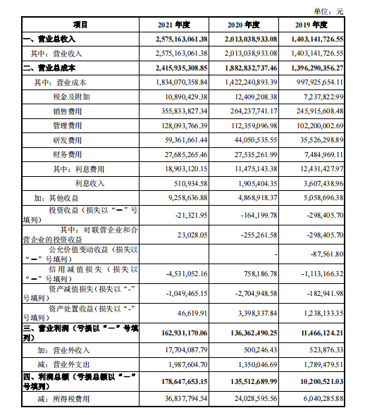 招股書顯示,2019年、2020年以及2021年,乖寶寵物營業(yè)收入分別為14.03億元、20.13億元及25.75億元,公司主營業(yè)務收入分別為14億元、20.05億元和25.60萬元,主營業(yè)務毛利率分別為28.87%、33.12%、32.79%,凈利率分別為0.3%、5.54%、5.51%。