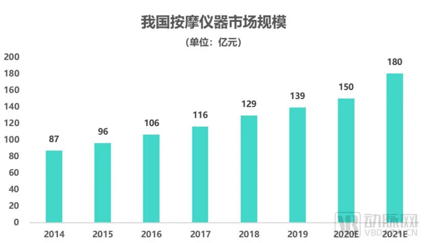 從可穿戴設(shè)備細(xì)分市場來看,便攜按摩儀相較于按摩椅等大型設(shè)備,因其客單價(jià)低、體積小、便攜性強(qiáng)等特點(diǎn),近年來增速較高。2020年我國按摩儀器市場規(guī)模達(dá)到150億元,近6年來,該賽道年復(fù)合增長率達(dá)9.5%。按摩儀作為消費(fèi)升級趨勢下,醫(yī)療健康領(lǐng)域的“品質(zhì)生活”體現(xiàn),有向全民普及的趨勢。
