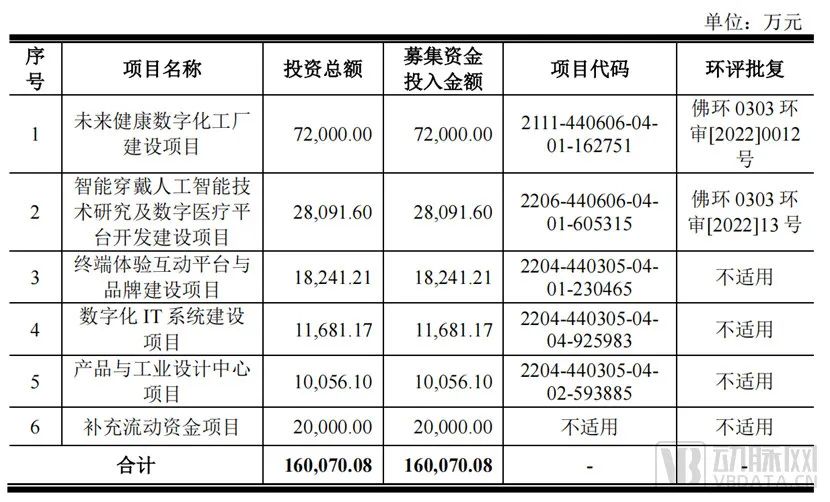 本次IPO,SKG計(jì)劃募資16億元,分別投入到未來健康數(shù)字化工廠建設(shè)項(xiàng)目、智能穿戴人工智能技術(shù)研究及數(shù)字醫(yī)療平臺開發(fā)建設(shè)項(xiàng)目、終端體驗(yàn)互動平臺與品牌建設(shè)項(xiàng)目、數(shù)字化IT系統(tǒng)建設(shè)項(xiàng)目、產(chǎn)品與工業(yè)設(shè)計(jì)中心項(xiàng)目和補(bǔ)充流動資金。