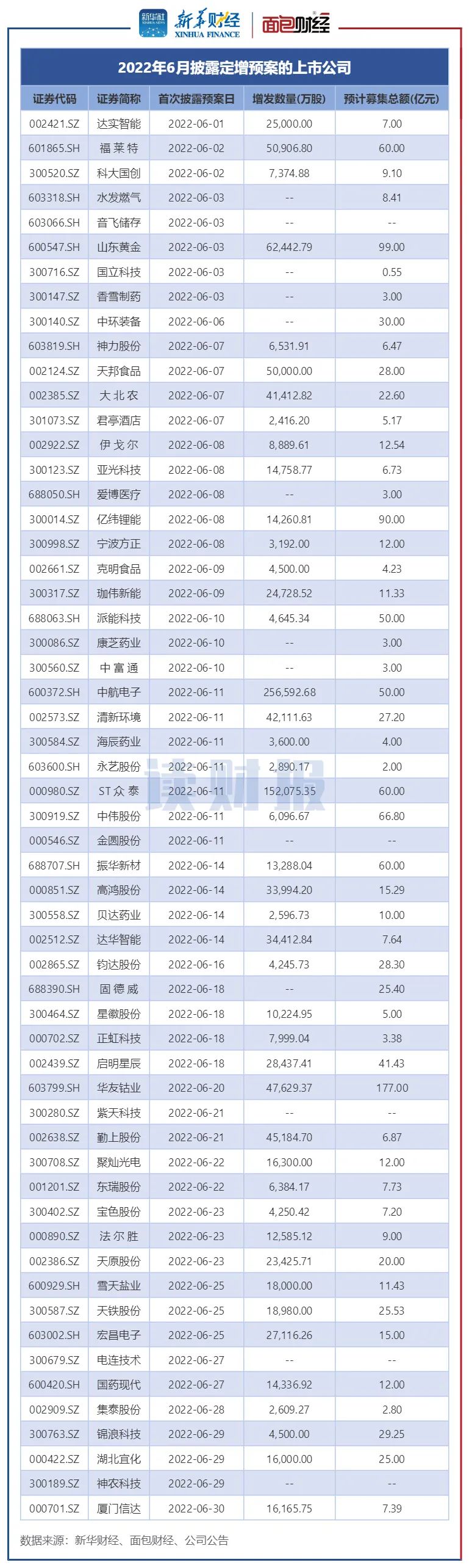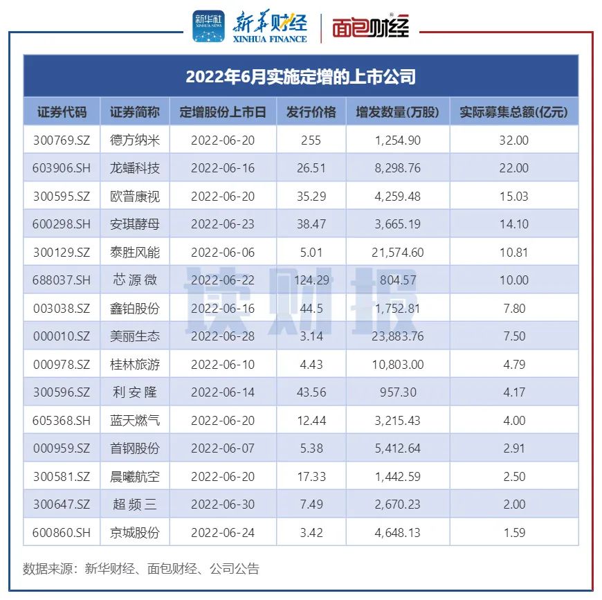 圖2:2022年6月實(shí)施定增的上市公司(按定增股份上市日統(tǒng)計(jì))