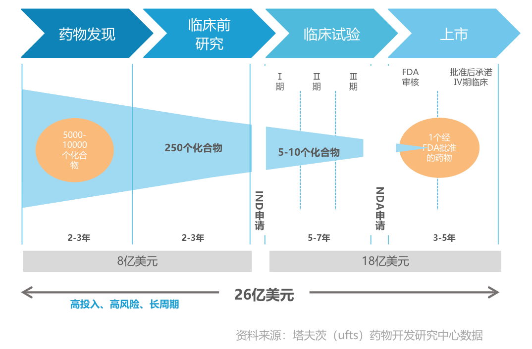 在傳統(tǒng)的藥物研發(fā)過程中,常常需要藥化專家根據(jù)經(jīng)驗提出5000-10000種化合物做藥物篩選,篩選出250個左右的化合物進(jìn)入臨床前研究,然后找到5-10個化合物進(jìn)行臨床試驗,最終有一兩種化合物通過臨床測試,無異于“大海撈針”。