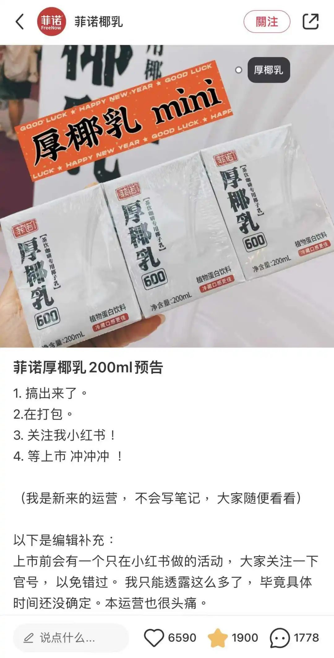 不過,早在去年菲諾的官博就抓住了這樣養(yǎng)成系的流量密碼,順應(yīng)粉絲建議推出mini版厚椰乳的同時(shí),也怯生生地表示“我是新來的運(yùn)營(yíng),不會(huì)寫筆記,大家隨便看看”。這句話一出,瞬間就讓人感覺賬號(hào)背后多了一個(gè)有血有肉的活人,生澀卻又坦誠(chéng),十分有趣可愛,于是粉絲也紛紛踴躍提出了產(chǎn)品改進(jìn)建議。
