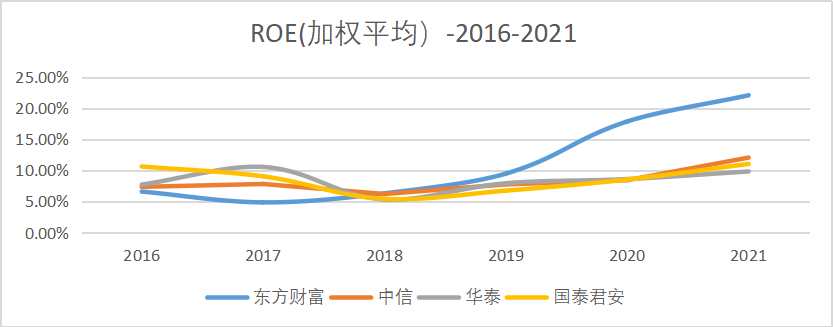 和傳統(tǒng)券商相比,東方財富的ROE遠高于同行,2021年達到了22.1%。而TOP3行業(yè)均值為10.99%,可以看出東方財富的資本使用效率和盈利能力遠高于傳統(tǒng)券商。