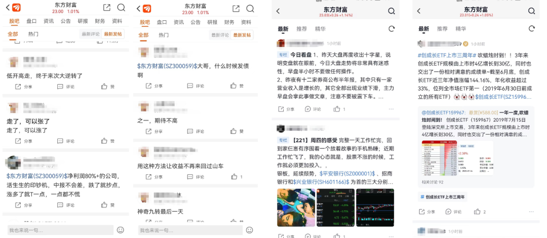 (圖:評論截圖,左二為東財、右二為雪球,來源:東財雪球客戶端)