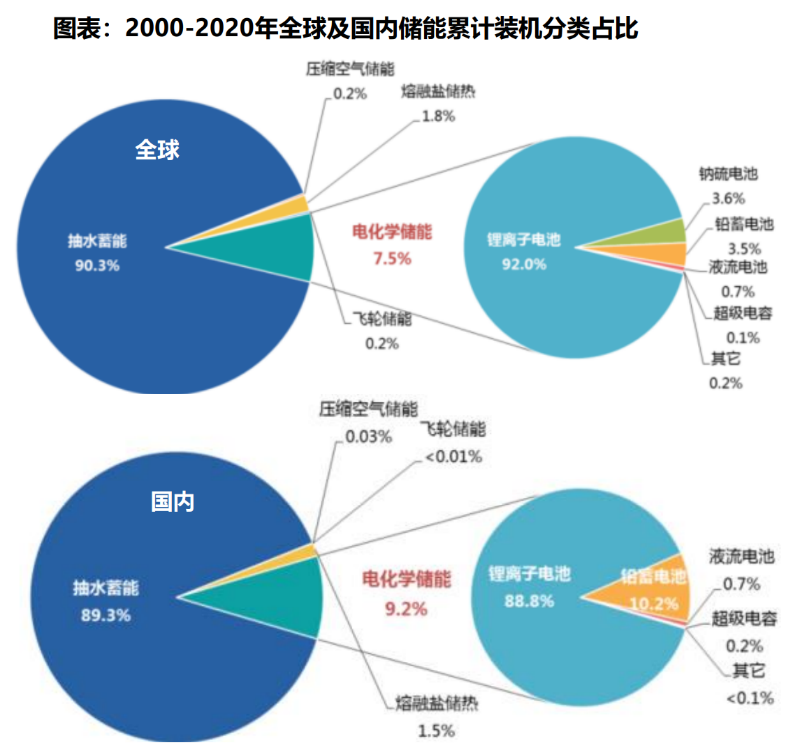 根據(jù)CNESA、東吳證券數(shù)據(jù),截至2020年底,中國(guó)已投運(yùn)儲(chǔ)能項(xiàng)目中抽水蓄能的累計(jì)裝機(jī)占比89.3%,同比下降4.1%;電化學(xué)儲(chǔ)能的累計(jì)裝機(jī)占比提升3.9%至9.2%,對(duì)應(yīng)裝機(jī)容量3.3GW,其中鋰離子電池裝機(jī)占比快速提升至89%,同增8.2%,對(duì)應(yīng)累計(jì)裝機(jī)量約2.9GW。國(guó)內(nèi)儲(chǔ)能行業(yè),是以抽水儲(chǔ)能占絕對(duì)主流,電化學(xué)儲(chǔ)能快速上升的局面。