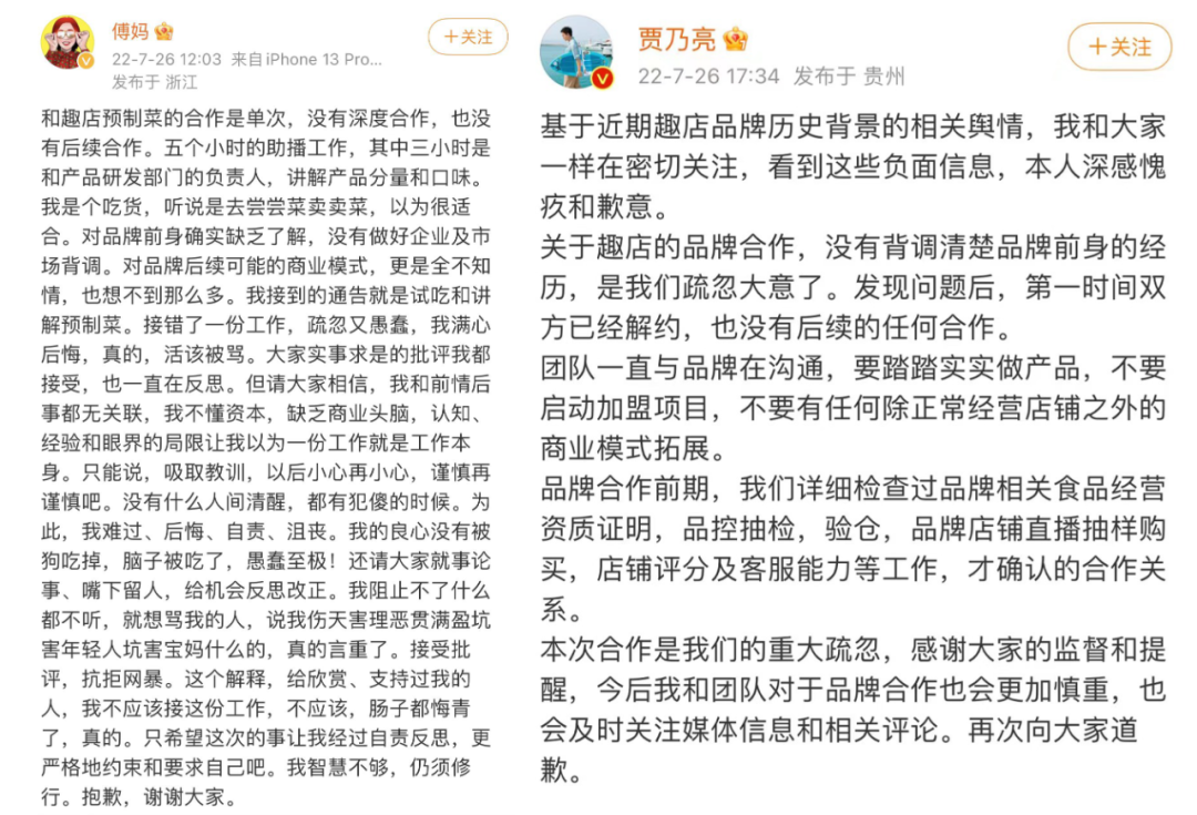 用一句話翻譯下賈乃亮和傅首爾的道歉聲明: