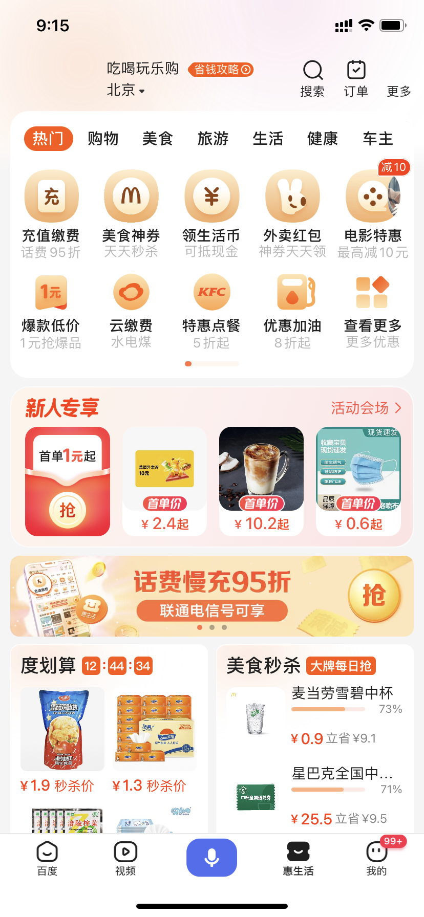 另一大信息流巨頭百度APP,也同樣試圖在APP里裝進(jìn)更多的東西,目前在百度APP的首頁(yè)欄里,“惠生活”已經(jīng)成為了一級(jí)入口,而這個(gè)頁(yè)面主要提供了電商及本地生活類(lèi)的服務(wù)。
