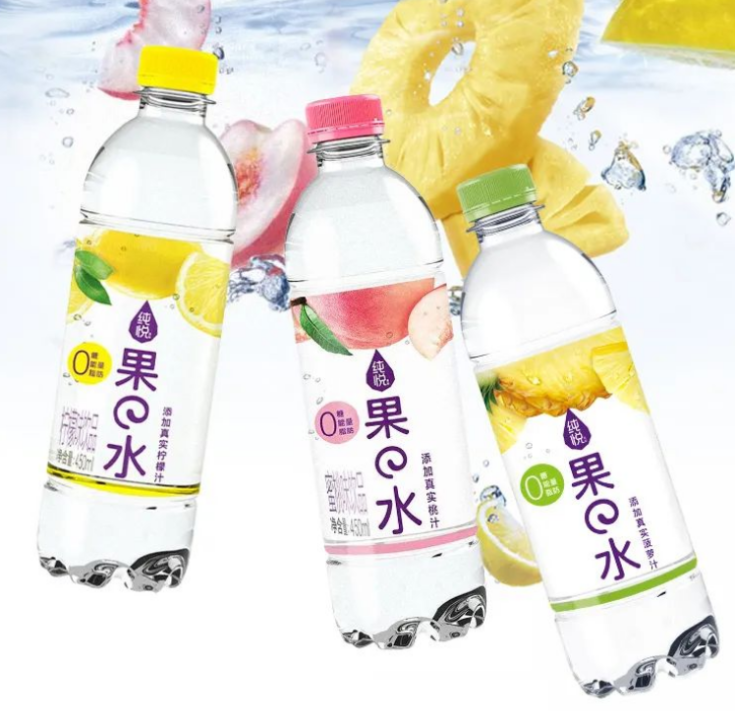 2020年,可口可樂上線了“純悅果水”,主打“清淡、天然”,在“純悅”這個瓶裝水品牌下推出子品牌,可以看出可口可樂對這款水的定位是圍繞“水”的多元化口味做文章,產(chǎn)品也是以“好喝的水,讓你好好喝水”為賣點。
