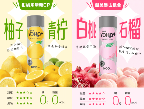 除了巨頭布局之外,新品牌也瞄上了近水飲料。2021年,飲料品牌「有飲NOD」推出其首個0糖風味水系列「好味水」,以天然甜葉菊提取物——甜菊糖苷作為甜味的主要來源,同時添加真實果汁。
