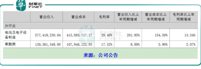 毛利率方面,新舊業(yè)務(wù)差距還是蠻大,鋰電正極材料的毛利率為28.46%,同比增長2倍多,傳統(tǒng)業(yè)務(wù)則遜色許多,草酸類產(chǎn)品的毛利率為17.32%。